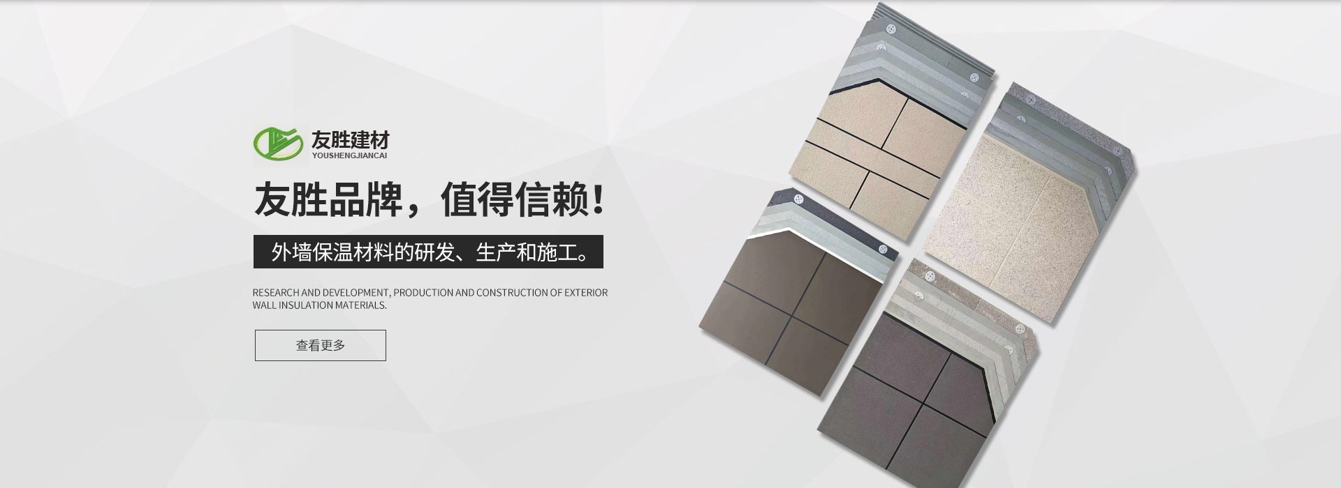 安徽友勝建材科技集團(tuán)有限公司是一家專業(yè)從事建筑施工與節(jié)能保溫及裝飾裝修生產(chǎn)、施工企業(yè)。企業(yè)于2008年從事外墻保溫材料的研發(fā)。生產(chǎn)和施工。現(xiàn)公司旗下?lián)碛?安徽舒然裝飾 工程有限公司)裝飾裝修貳級資質(zhì)、防水防腐及保溫貳級資質(zhì)。旗下系列產(chǎn)品有:巖棉板、巖棉復(fù)合板、石墨聚苯板、珍珠巖板、勻質(zhì)板、地坪保溫隔聲板,粘結(jié)、抹面及無機(jī)輕型材料等。